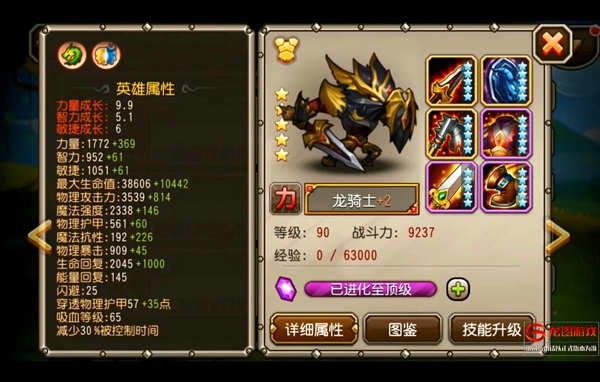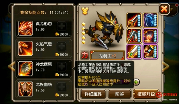 龙骑士出世即觉醒,觉醒装备“斩龙剑”将龙骑士的战斗力进一步扩大,而觉醒技能“龙族领袖”使龙骑士更加肉。