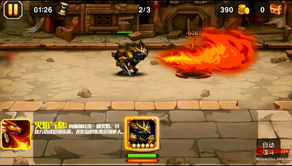 近身攻击敌人,造成伤害的同时能在一定时间内让敌人处于眩晕状态,也就是说龙骑士近身攻击敌人,敌人却不能近身攻击他,并且能打断敌人技能,尤其是变身后攻击范围变得更大,前排乃至中排都被龙骑士牢牢控制住!简直是伤害+控制+压缩阵型一体化!