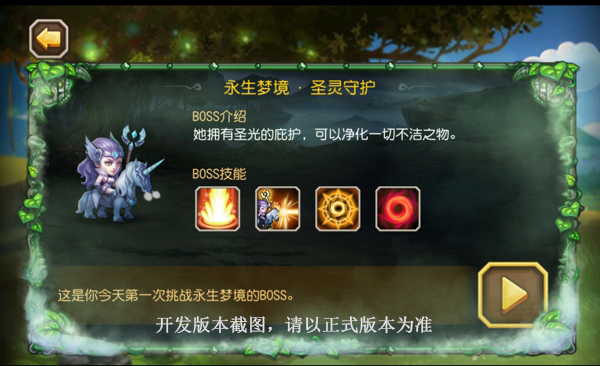 在新版本中,将增加两名觉醒英雄:死骑和骨弓,并新添加了两个世界BOSS:无畏骑士和圣灵守护。除此之外,更加便利性的调整也将在新版本中实现,如扫荡加速等。