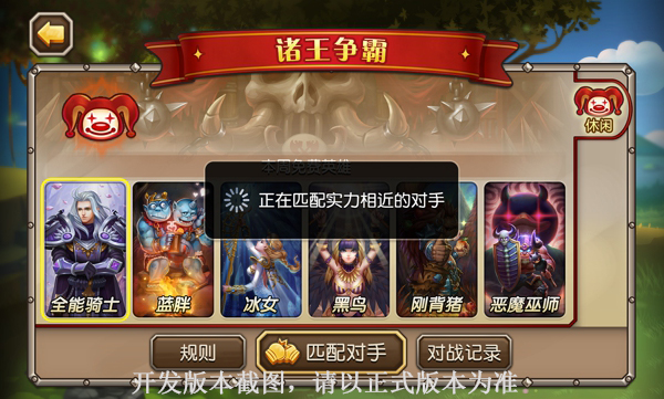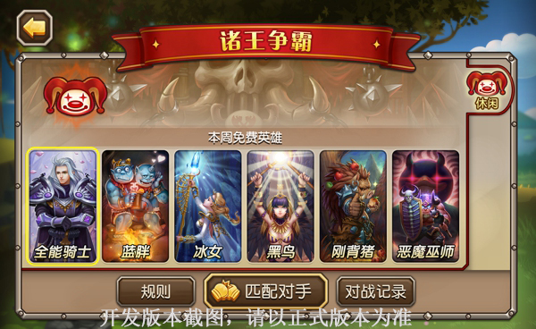 另外,诸王争霸玩法中,每周还有六个免费英雄供大家选择,免费的英雄除去上述满等级装备等,还满星级,已觉醒,无洗练属性。玩家可以尽情的享受多种英雄搭配带来的乐趣。