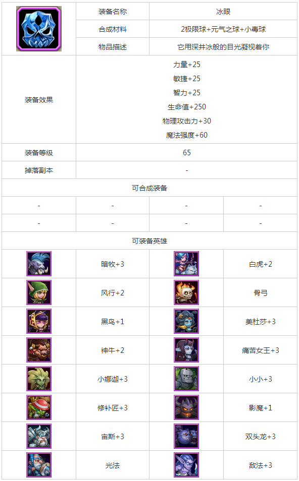 本文提供刀塔传奇冰眼紫装的装备效果、获取途径、装备等级,方便刀塔玩家查询。