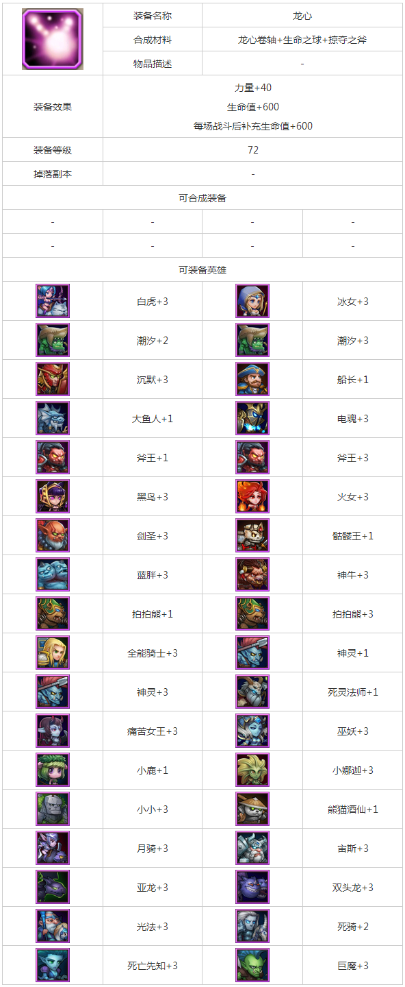 本文提供刀塔传奇龙心紫装的装备效果、获取途径、装备等级,方便刀塔玩家查询。