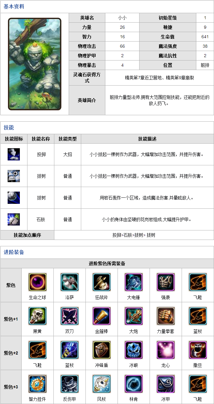 小小是刀塔传奇中的一个力量型英雄,控制技能相当惊人,拥有大范围控制技能,还能把附近的敌人扔飞。这个英雄在后期也是超强,在成为一个巨人以后,这个英雄有着超强的攻击力。