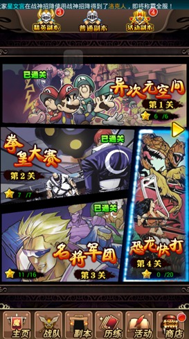 副本战斗目前有三种:精英副本,普通副本,活动副本。通过副本战斗玩家可以获得丰富的游戏资源,并通过获得资源来强化自己的团队。
