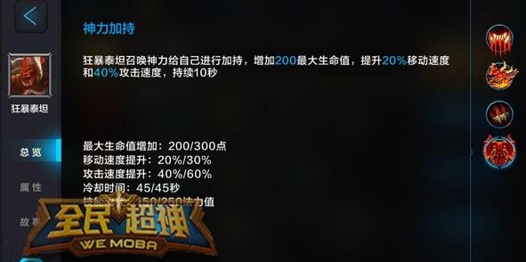 耐力光环(被动):增加牛头人之神附近友方部队的攻击和移动速度;