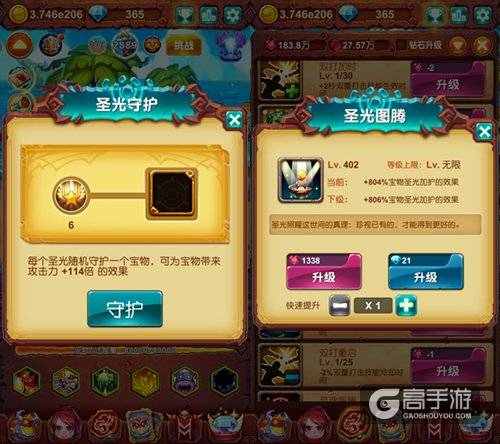 圣光存在的目的,就是为了让各位勇者更轻松的闯关冒险。合理的运用圣光加护的效果,使手中的宝物在圣光的照耀下变得越来越强大,这样才能帮助各位勇者在闯关道路上一帆风顺!
