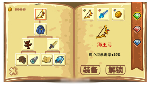 狮王弓:狮心塔暴击率+20%,由霜袍解锁获得,解锁费用为20000金币。