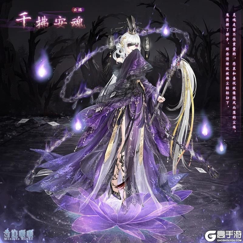 【千拂安魂】含正常姿势与特殊姿势,全新妆容“泥犂无常”,特殊姿势外套“胡不归”,特殊姿势鞋子“轮回狱”,精美可移动摆件“痴顽愚火”、“断愁锁”、“紫府玄莲”、“拘夜锁魂”。