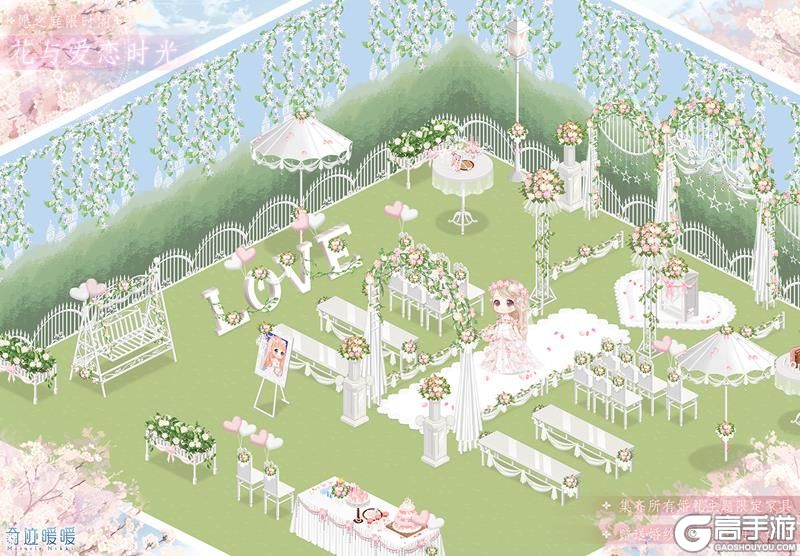 3月9日5:00—3月15日23:59,在小屋愿之庭的限时抽奖阁“花与爱恋时光”许愿,可获得精美婚礼主题家具,集齐限定家具可解锁小暖暖装扮"明日如诗"。