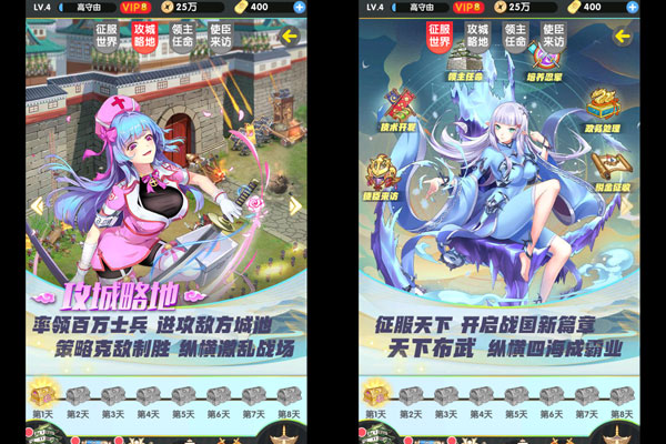 《萝莉养成计划》是一款放置二次元休闲养成手游,游戏以战国为背景,将古代诸多武将幻化成各式美少女,萝莉?御姐?兽娘?机械战姬?应有尽有!游戏将互动养成和战斗冒险相结合,以多位萌娘之间的阵容搭配为核心玩法,配合独特的挂机探索,给玩家带来全新的超休闲放置体验!立绘放置,即时战斗,打破传统战斗方式,放置战斗和随机施法创新融合,强化游戏的策略性和操作性,更有离线挂机,一键领取,从此告别繁琐。